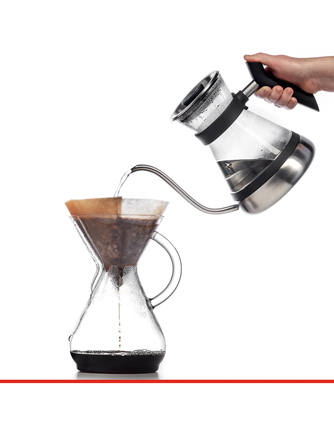 Unikátna sklenená kanvica s úzkou výlevkou vhodná na filtrovanú kávu. Kanvica pracuje s indukčným ohrevom. Objem: 1,2 l.