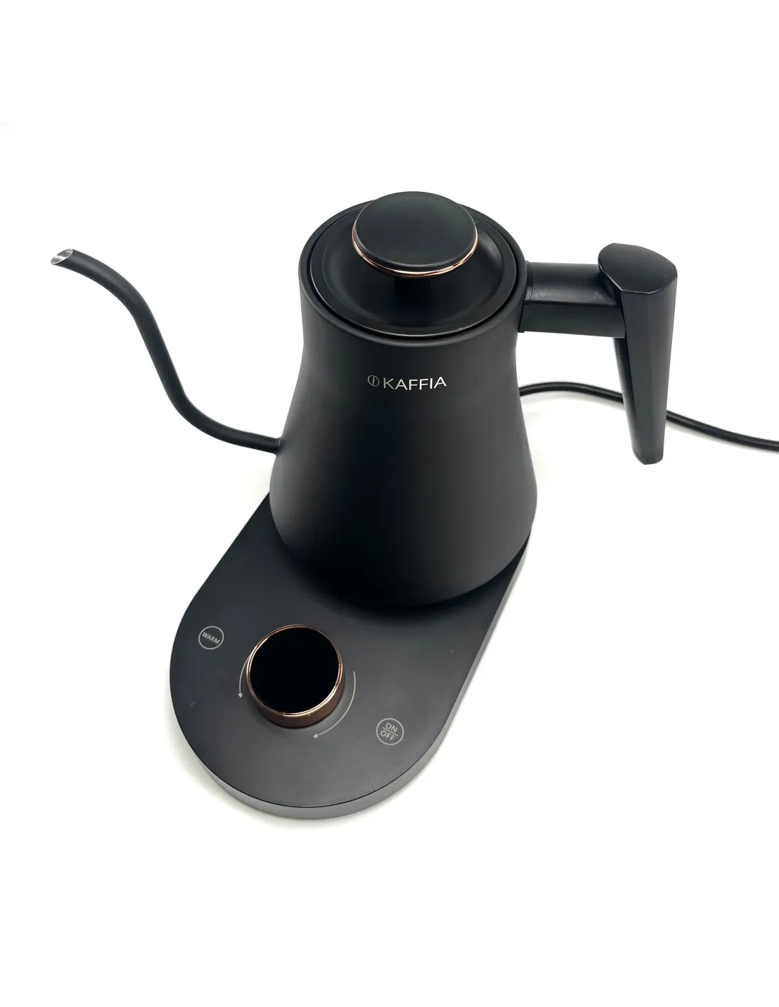 Inteligentná rýchlovarná kanvica Eletric Kettle Kaffia umožňuje nastaviť presnú teplotu, na ktorú sa má voda ohriať na správnu prípravu nápoja. Okrem nastavenej teploty zobrazuje aj aktuálnu teplotu vody , takže funguje ako teplomer. Kanvica je vybavená 360° otočnou základňou a štýlovým dotykovým panelom s otočným gombíkom, ktorý funguje aj ako displej.