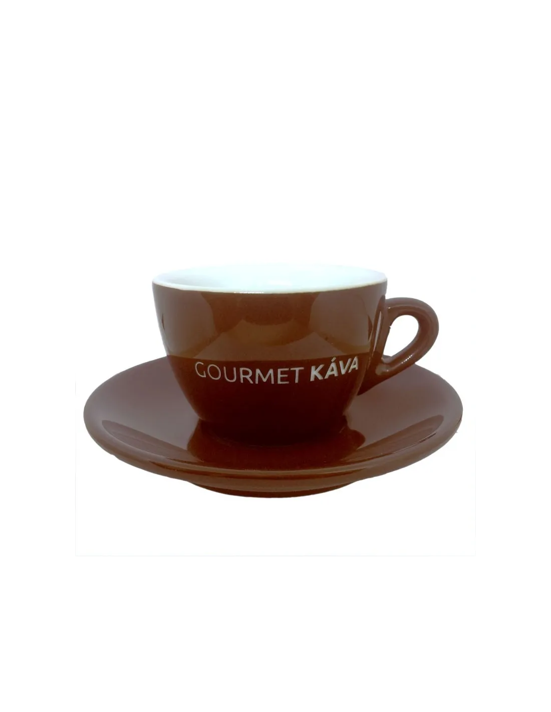Porcelánová šálka na cappuccino s s objemom 145 ml. Obsahujepodšálku . Farba: hnedá s bielym logom.
