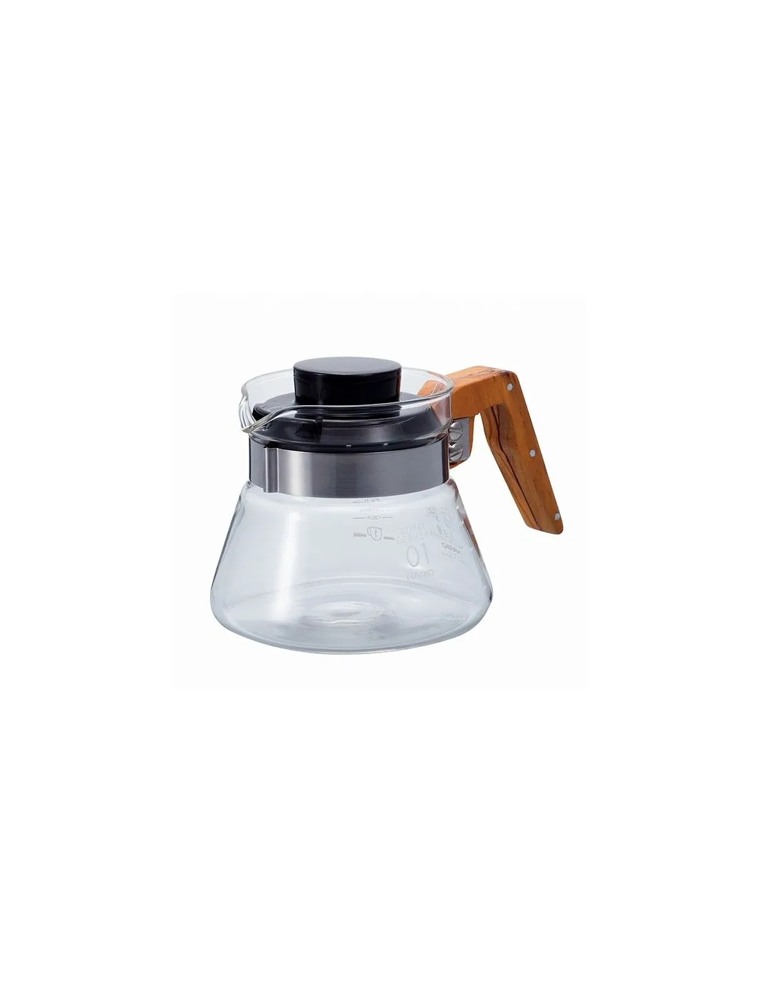 Luxusná sklenená kanvica na kávu s rukoväťou z olivového dreva Hario Range Server 400 ml na profesionálne servírovanie čerstvej kávy.
