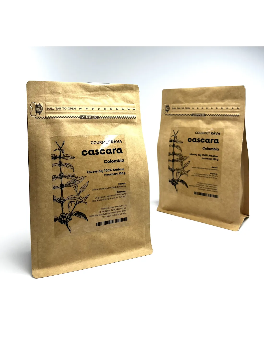 Cascara v 100 g baleniach sa spracováva "vysokotlakovým spracovaním", čo je metóda pasterizácie bez tepelného spracovania potravín po zabalení, pri ktorej sa používa vysoký hydrostatický tlak (od 87 000 psi - 6 000 barov). Tento tlak inaktivuje patogény v potravinách, predlžuje ich trvanlivosť a znižuje až úplne eliminuje používanie konzervačných látok.
