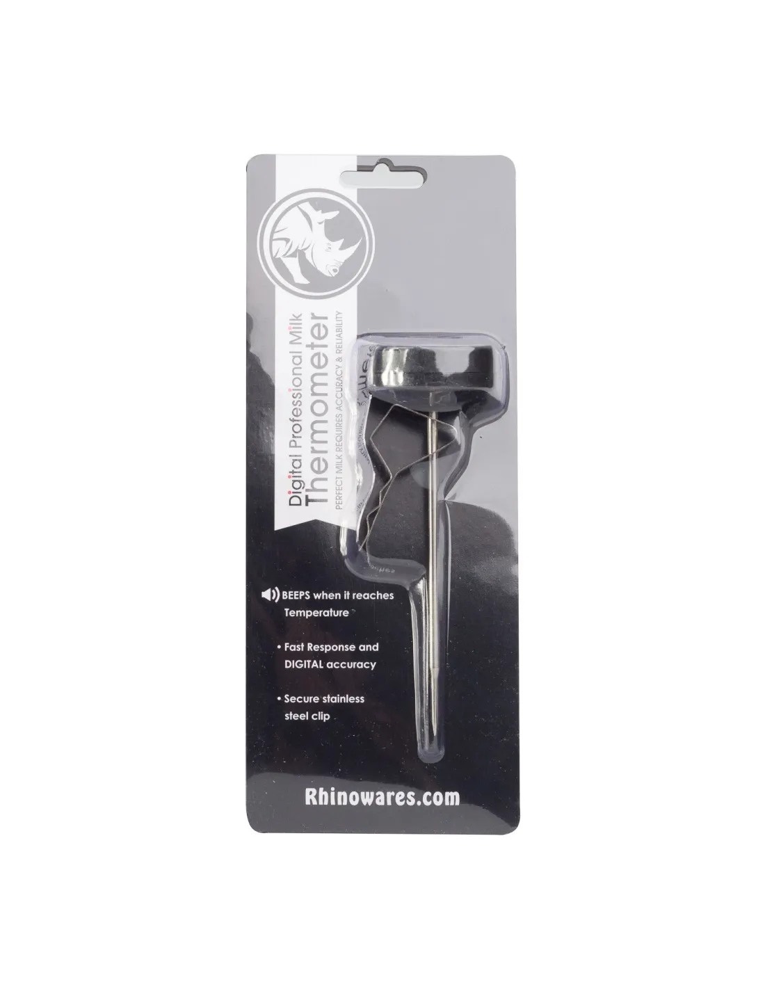 Profesionálny digitálny teplomer Rhinowares od austrálskej značky Rhinowares vám poskytne úplnú kontrolu nad teplotou práve vyšľahaného mlieka, vriacej vody alebo iných nápojov.