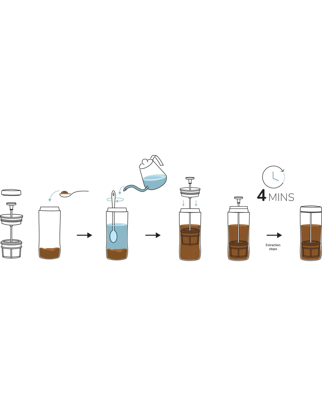 Prečo je cestovný lis na espresso ideálnym spoločníkom na cesty? Jeho robustný dvojvrstvový plášť z nehrdzavejúcej ocele udrží nápoj dlho teplý. Z french pressu môžete piť priamo bez rozlievania. Kávovar môžete zatvoriť pomocou tesniaceho vrchnáka, po zatvorení sa vám nápoj nerozleje, naozaj! Univerzálne rozmery tlačidla Travell Press sa hodia do väčšiny držiakov pohárov v aute.