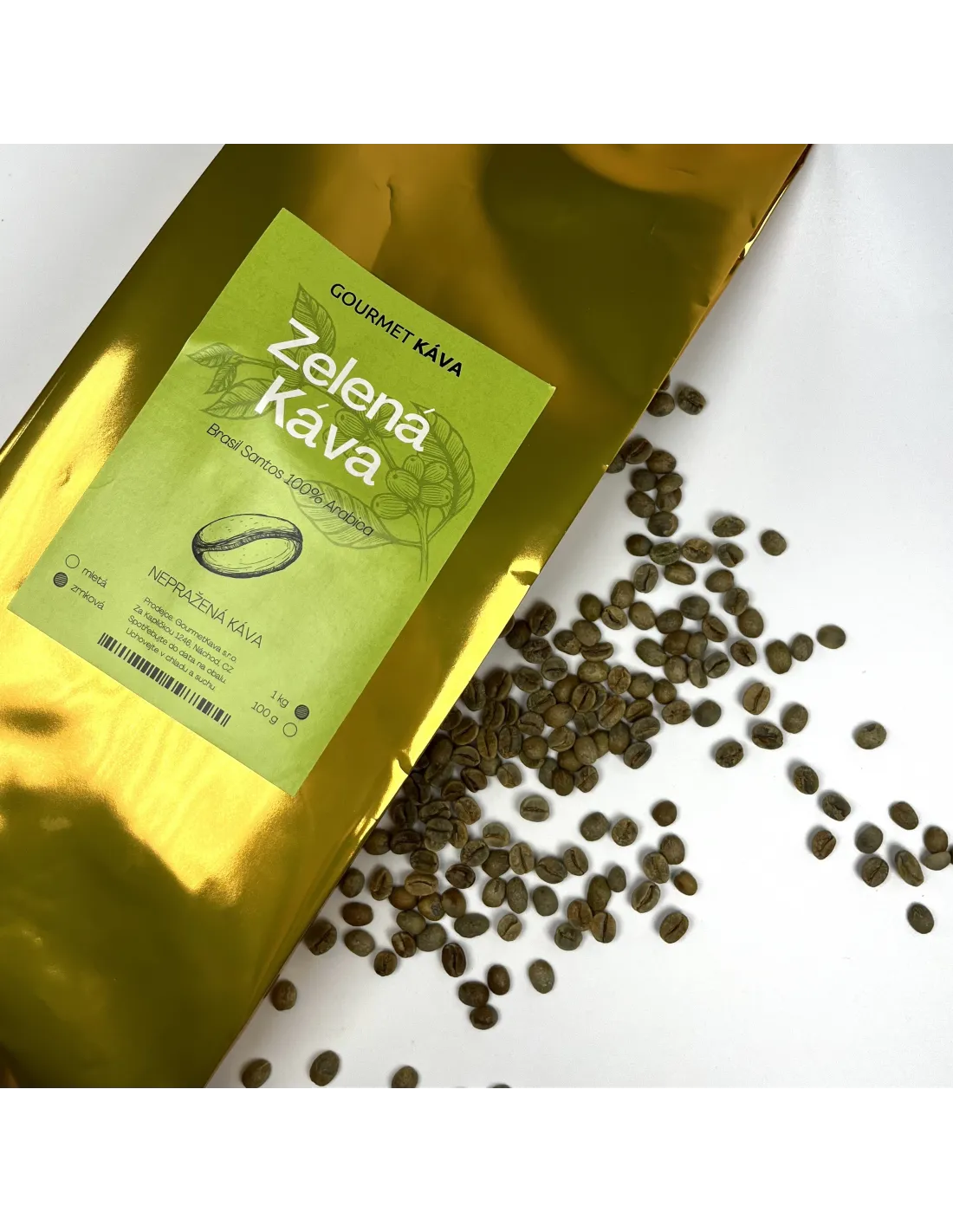 Zelená nepražená zrnková káva Brazil Santos, 100% arabica! Vhodná na chudnutie a detoxikáciu. Na rozdiel od tradičnej praženej kávy obsahuje zelená káva aj viac kofeínu.