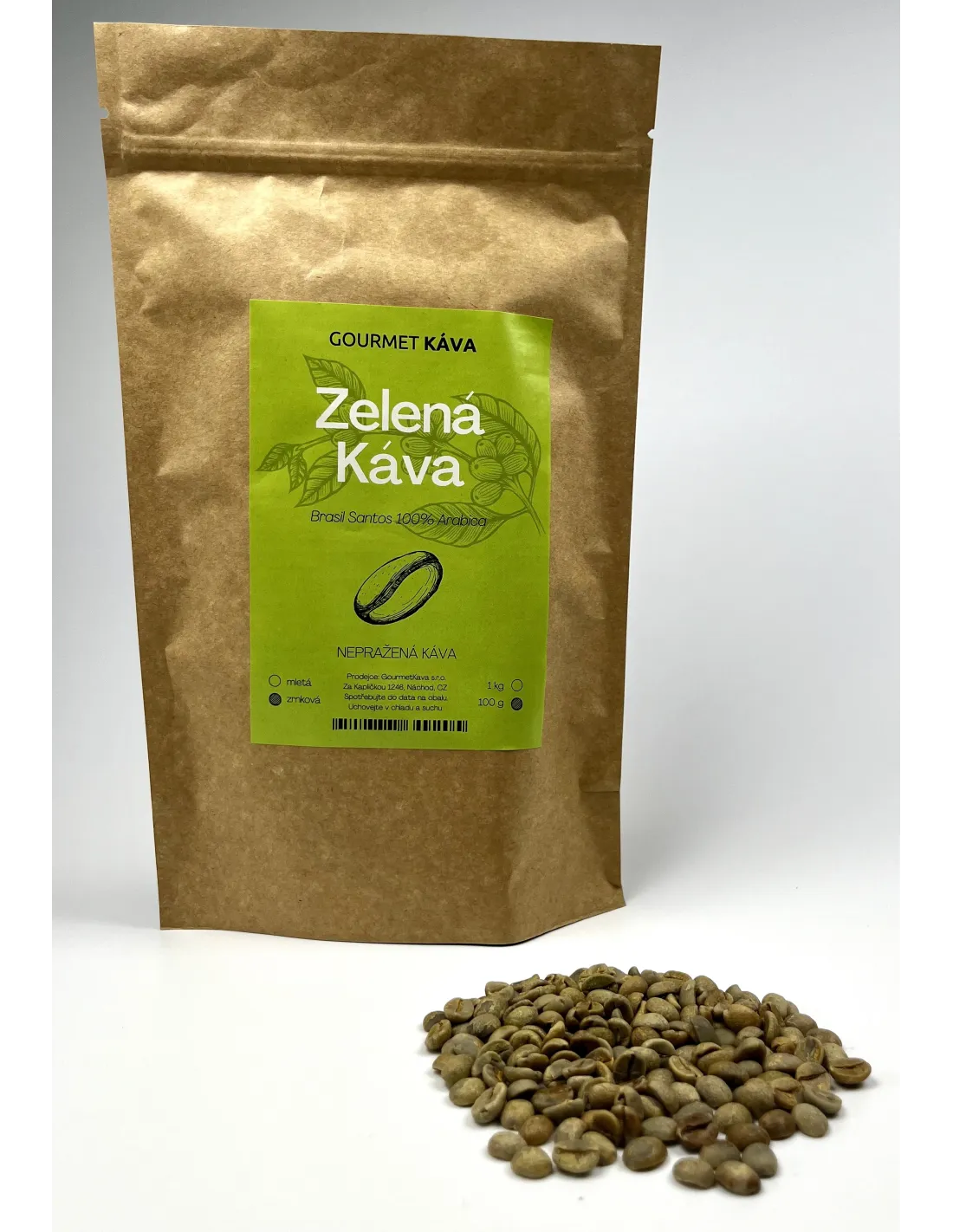 Zelená nepražená zrnková káva Brazil Santos, 100% arabica! Vhodná na chudnutie a detoxikáciu. Na rozdiel od tradičnej praženej kávy obsahuje zelená káva aj viac kofeínu.